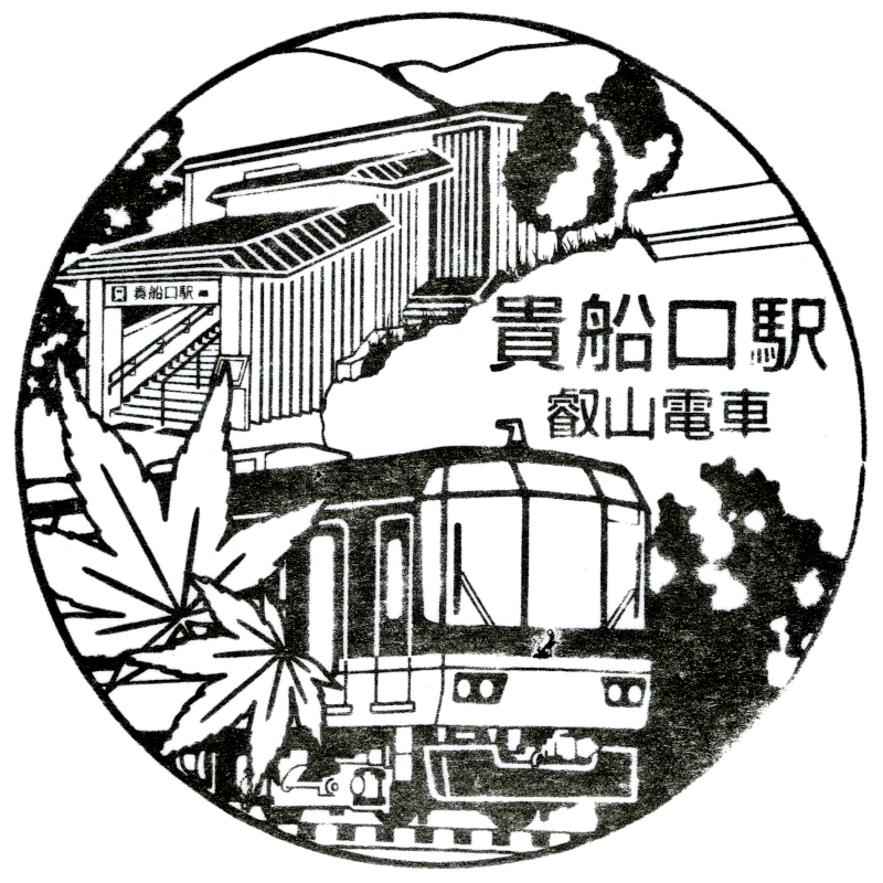 右:鞍馬線の終点一つ手前にある貴船口駅のスタンプには900系きららが描かれています。鞍馬線での観光車両として固定ダイヤで運用されています。