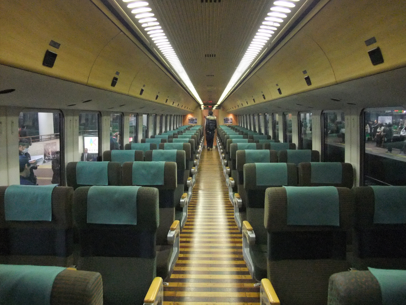湯布院~博多間が主な利用のようで、大分~湯布院間はかなり空いていました。車体形状の関係で荷棚はかなり小さめなので、大きな荷物を持ち込む時はご注意を。