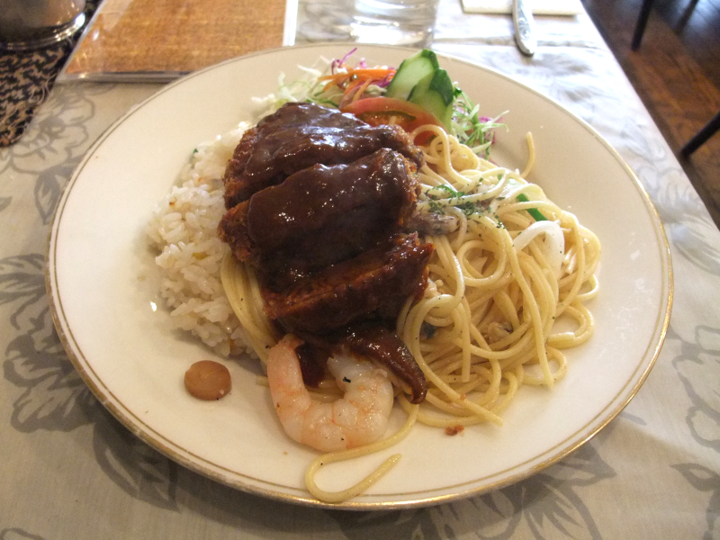 今回は坂本龍馬に因んだ「Ryomaトルコ」を頂きました。「ビフカツに特製龍馬ソース、和風海鮮スパの和洋折衷」との事です。長崎に来たら是非味わいたい一品です。