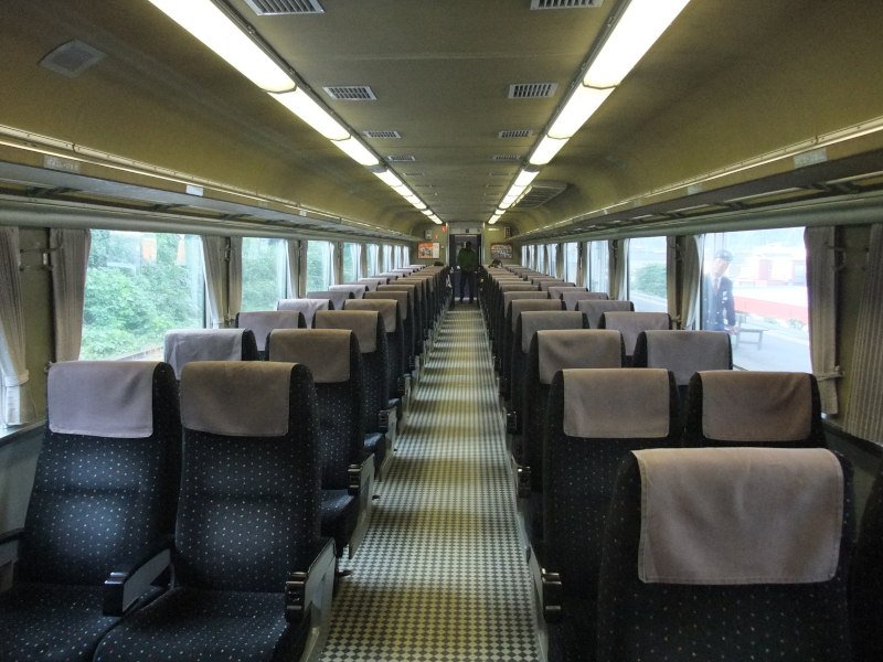 車内はリニューアルが施されていますが、新旧の融合といった感じで全体的に国鉄時代の雰囲気も残しています。荷棚が網という点も見逃せません。快速列車なので指定席券の追加で利用できます。