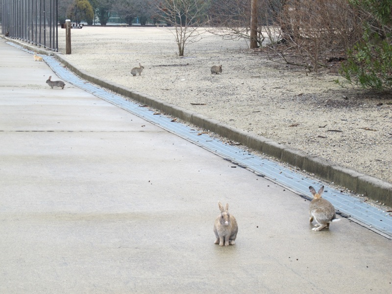 いざ上陸してみると車道にもウサギが飛び出してきて、とにかく凄まじい数のウサギが生息しています。その為島内は一般の自動車は入れず、桟橋~ホテルの送迎バスとレンタサイクルしか走っていません。そんなウサギたちの楽園のような島ですが、その直ぐ近くには―