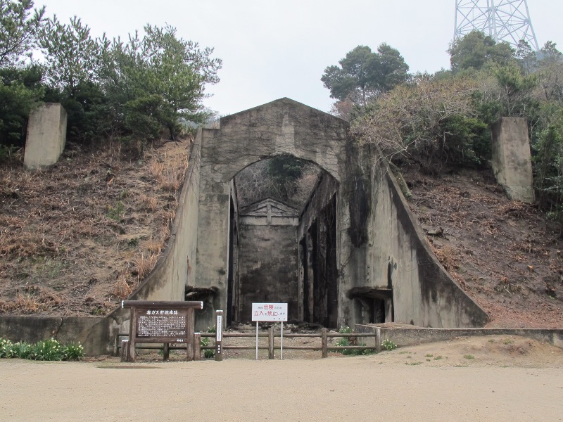 山の斜面に設けられた謎の構造物。軍事マニアにはご存知の方も多いかもしれませんが、かつて大久野島は毒ガスなどの化学兵器の製造工場でした。