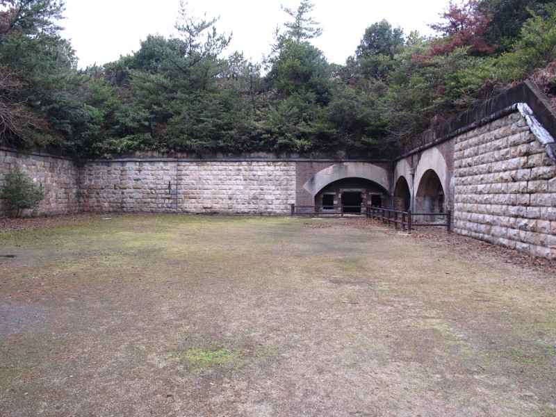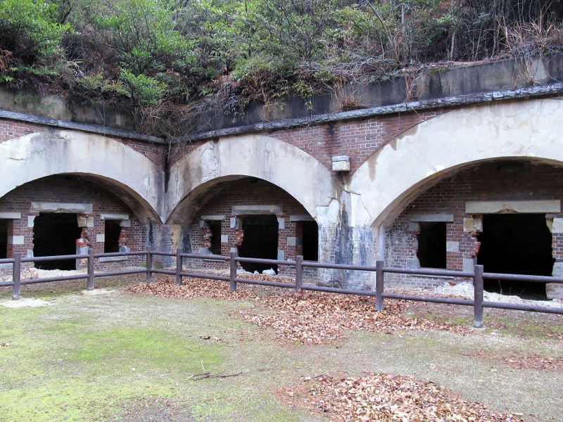 山奥に突然現れた謎の空間。こちらは北部砲台跡と呼ばれており、砲台と兵舎、倉庫が設置されています。元々大久野島は、日露戦争の為に要塞として整備されたのだそうです。砲台が撤去されてからは、見つかり難くて秘密を守りやすいと言う理由で化学兵器の製造工場に利用されたそうです。