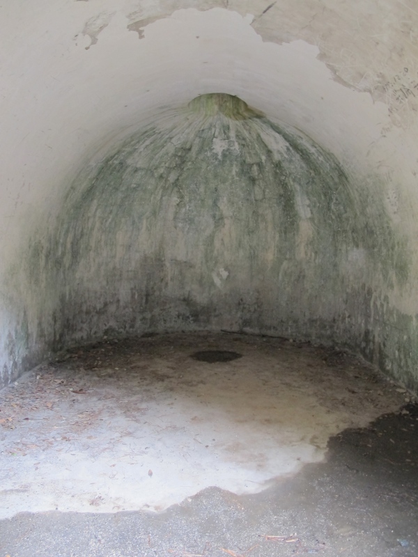内部は滑らかな円錐形で上部中央には穴が開いています。弾薬の運び出しに利用していたのでしょうか?