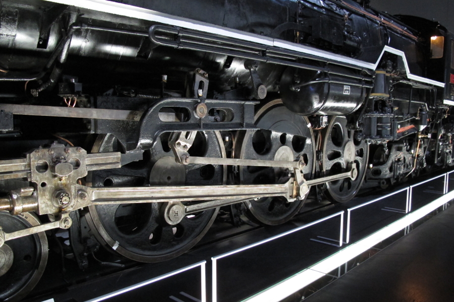この重厚な足回りも蒸気機関車の魅力ですよね。このフロアは全体的に暗いのがちょっと残念。