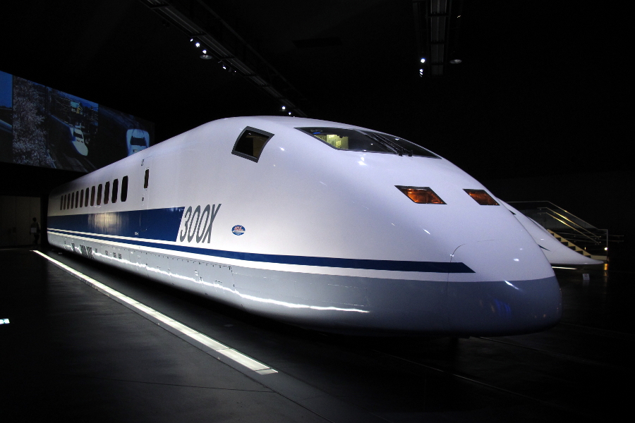 こちらは試験用に開発された955形新幹線、通称300Xです。300系新幹線が実現した270キロをさらに超えるべく開発された試験車で、リニアを除く鉄道車両で国内最速記録の443キロを達成しました。