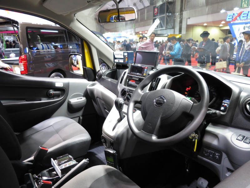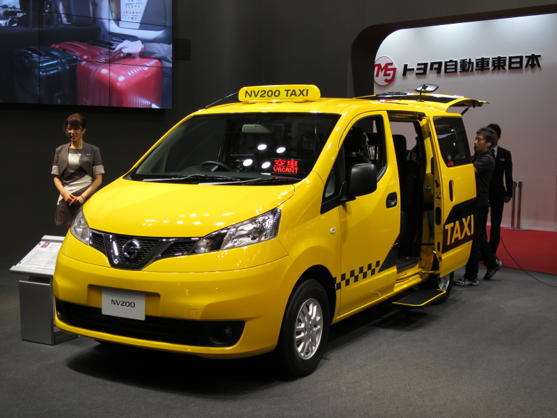 日産グループの日産車体ブースでは、新世代のタクシー「NV200タクシー」が展示されていました。