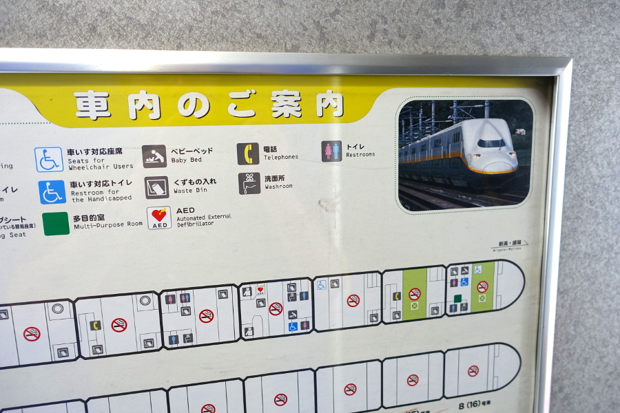車内の掲示物にはさりげなく初代塗装の面影が残されていました。
