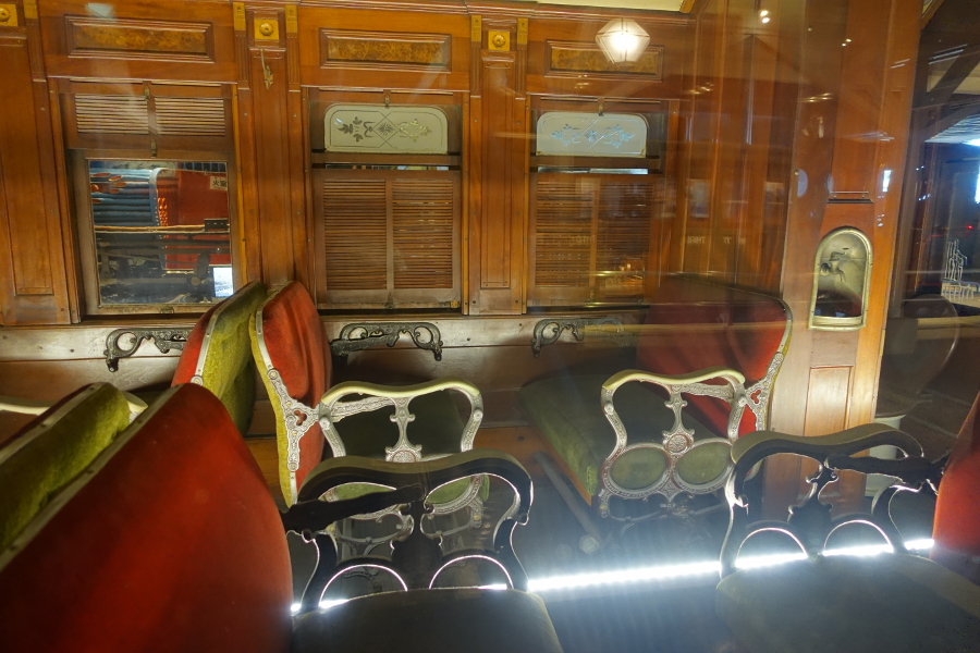 車内にはソファのような座席が設置されていて、内装も随所に装飾が施された絢爛豪華な仕様です。走る洋館のような雰囲気に感じました。