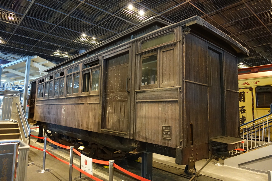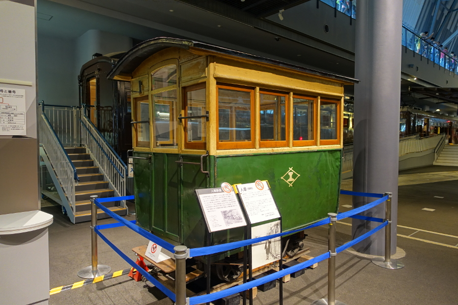 こちらは松山人車軌道で使われていた客車です。人力で押したり引いたりして動かす客車としては結構大きく感じます。