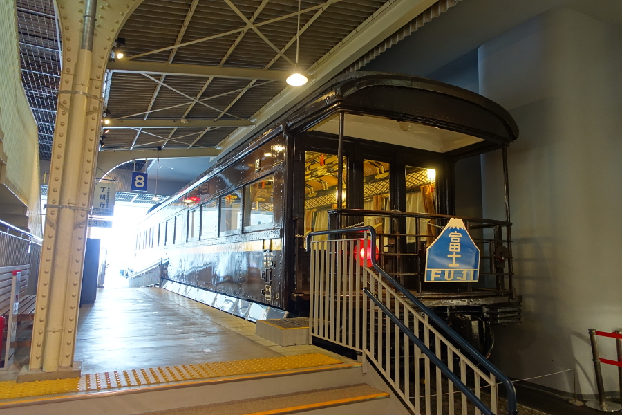 その後ろには特別客車の開拓使号が連結されています。アメリカ様式のかなり特徴的な雰囲気の客車です。反対側にあるホーム上からは客車内も見学できます。