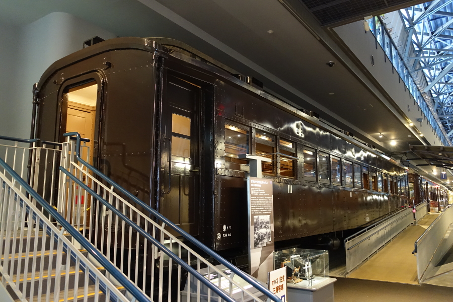 こちらは同じく明治天皇用に造られた御料車で、九州鉄道会社が制作したそうです。車体の外側にデッキが設けられている車両は日本では珍しいですね。アメリカの車掌車カブースに似ている気がします。