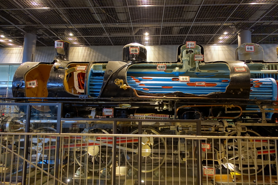 先頭部が日本離れした形状のこちらはドイツから輸入された9850形蒸気機関車です。マレー式というタイプだそうで、強力で軸重が軽い特性を生かして御殿場線の峠越えで使用されたそうです。ただしメンテナンスが困難であったために日本での使用は短期に終わったとか。