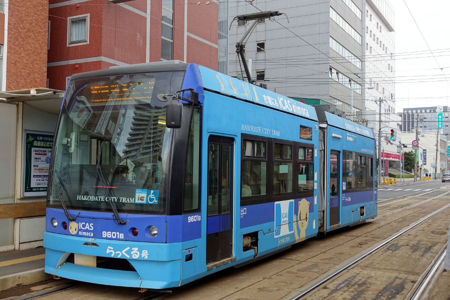 函館市電の新車にも乗れました。函館地区で利用開始となったICカードであるICAS nimocaの宣伝ラッピングが施されていました。函館バスと同じく全国相互利用サービス参加カードでも乗車が可能です。非常に便利ですね。