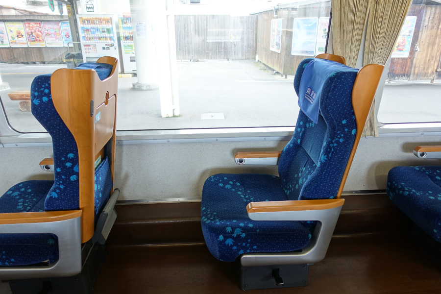 昨日も乗車したしおかぜ号のグリーン席ですが、南風号に比べて座席の造りはちょっと物足りない印象です。ひじ掛けが硬くて小さいので使い勝手が良くないのと、座席の座り心地もちょっと幅の広い普通席といった感じで特別な印象がありません。