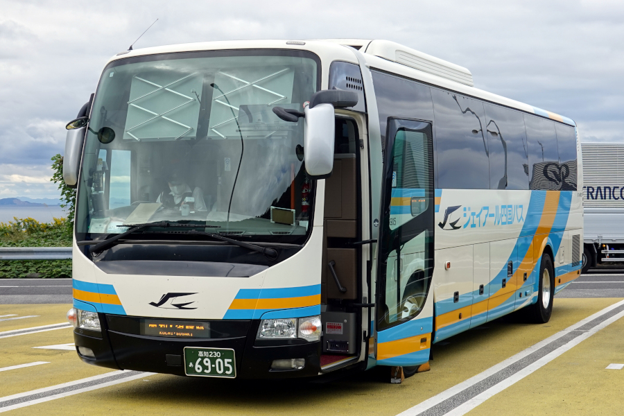 神戸三宮からは高知エクスプレス号に乗り換えて高知を目指します。大阪駅が始発のバスで始発から乗車したかったのですが、時間的に間に合わず後続便だと高知到着が遅くなってしまうのでやむなく神戸三宮から乗車しました。長距離高速バスでは珍しく女性の運転手氏でした。丁寧な運転と過不足ない案内放送で快適でした。