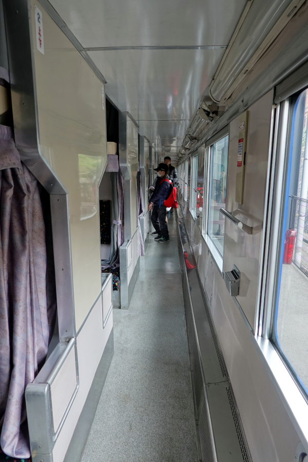 モケットはJR時代になって更新されているようです。車内では小学生の団体が大はしゃぎで寝台に寝転がるなど、保存車両として本当にこの状態でいいのか気になる点もありました。