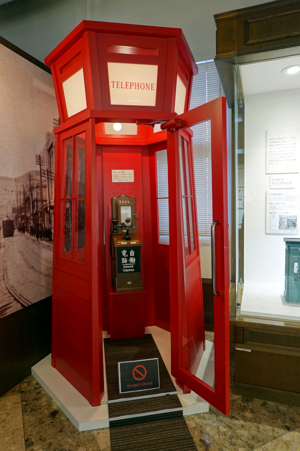 固定電話機コーナーの次は公衆電話機コーナーです。こちらはかつての公衆電話ボックスのレプリカです。色や形状から灯台や神戸ポートタワーを連想します。