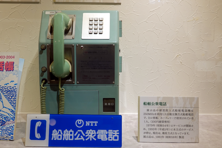 隔離された世界となる船上でも電話が可能な船舶公衆電話も存在しました。100円玉専用で、客船やフェリーなどで使われていたそうです。現在は衛星船舶電話サービスに移行しています。