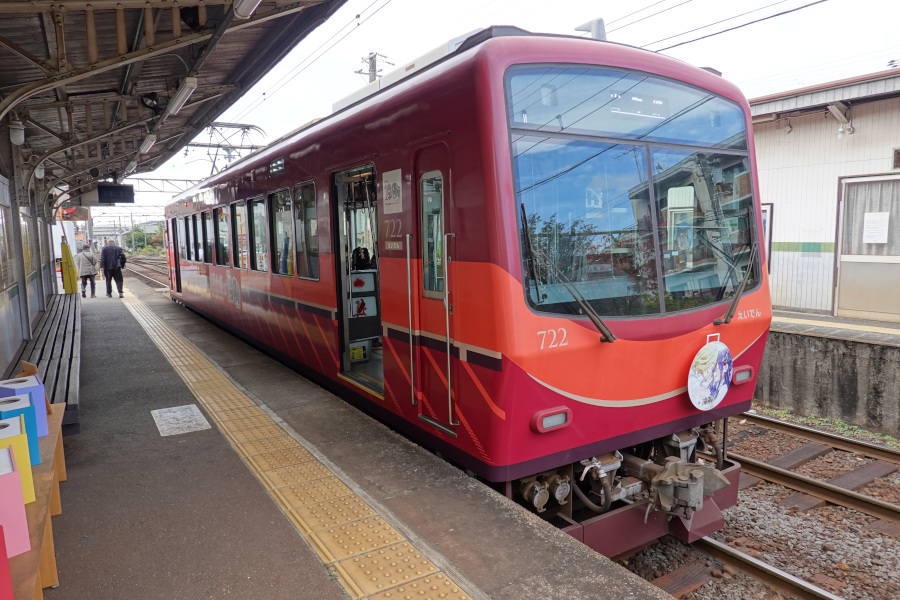 出町柳からは叡山電車に乗って駅スタンプを収集します。その途中でコミック百合姫とのコラボ電車に遭遇しました。ヘッドマークも掲出されています。